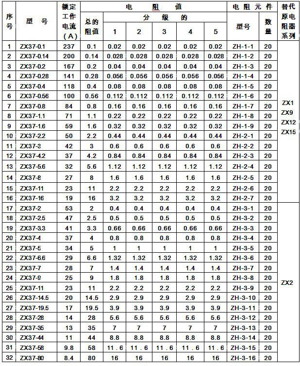 ZX37系列電阻器常用規(guī)格型號及技術(shù)參數(shù)